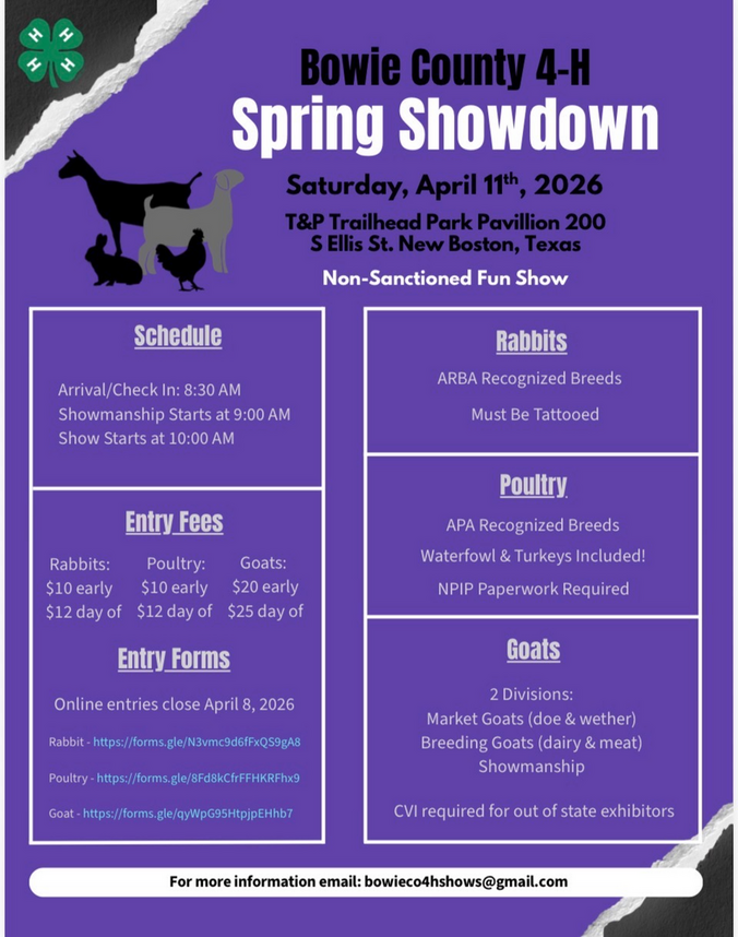Bowie County 4-H is clubs for kids in 3rd - 12th grade, with programs for K-2. From food science and robotics to fashion design and photography, there's a 4-H activity for everyone. Find a club near you to start making friends, learn new skills, and be a better you!